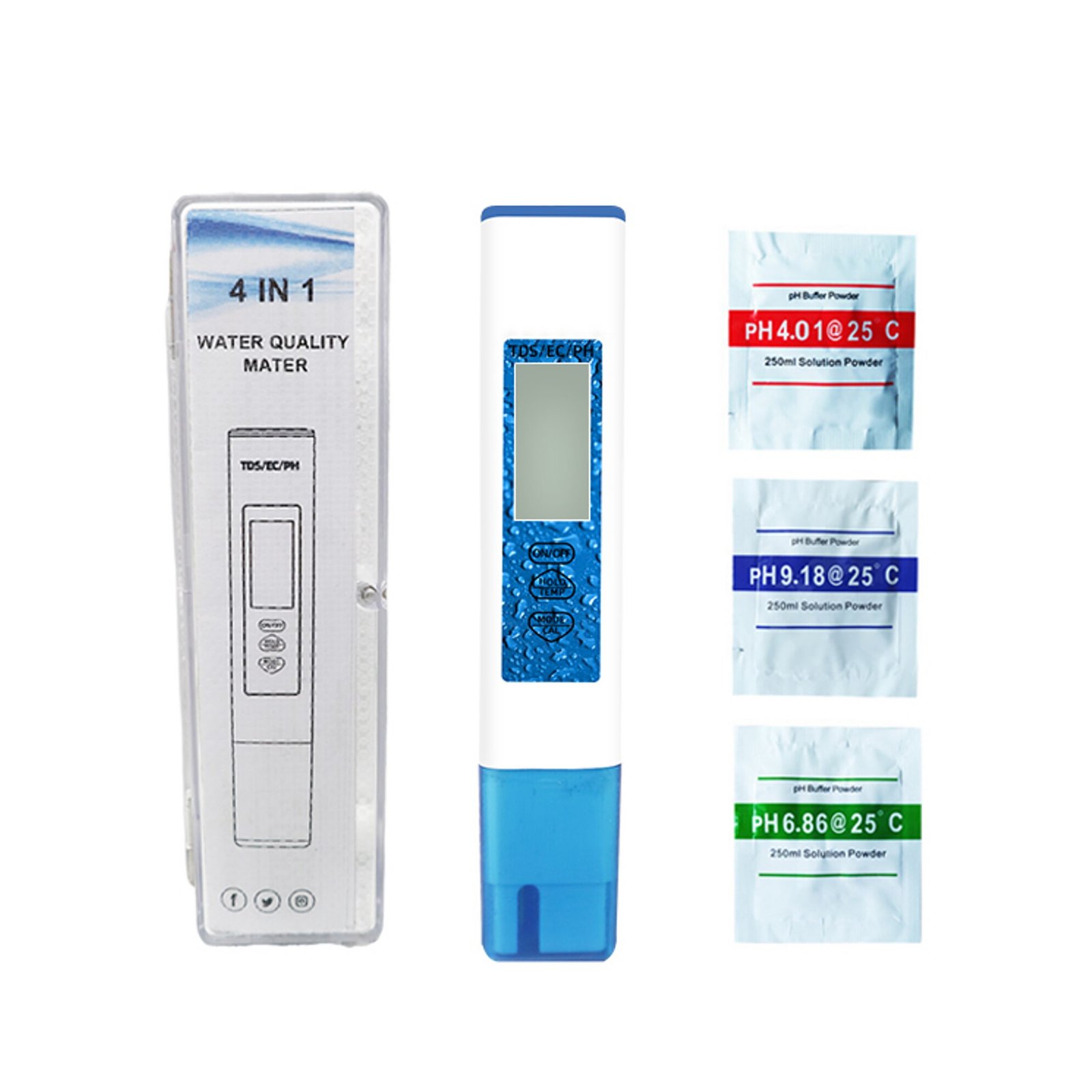 4-in-1 water quality meter is a multifunctional digital device designed to quickly and accurately measure: