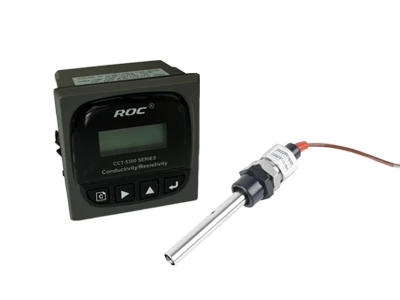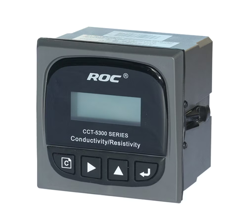 ROC CCT‑5320E is an advanced, panel-mounted online controller designed for real-time monitoring and control of electrical conductivity (EC), TDS (Total Dissolved Solids), and resistivity in water and other liquids. It belongs to the ROC CCT‑5300 series and is ideal for high-precision industrial and laboratory applications—including ultrapure water systems, wastewater treatment, boiler water, RO plants, and pharmaceutical production.